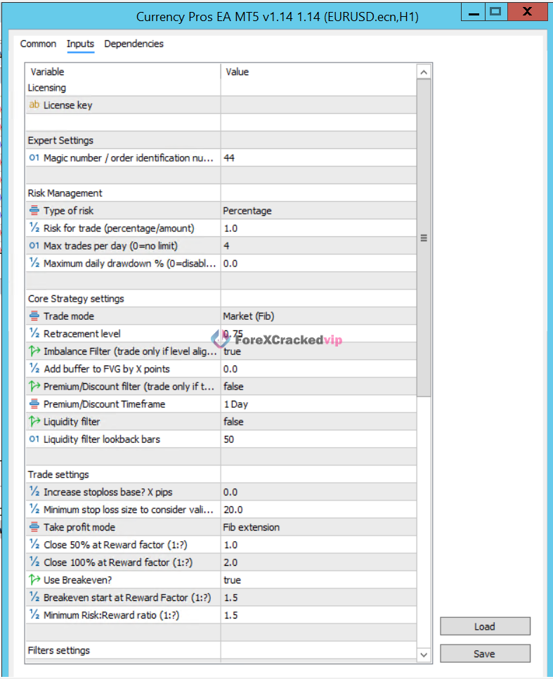 This is the section most traders actually need. The open web does not provide one clearly authoritative official settings panel for the generic Currency Pros EA MT5 product. So the safest way to write this is to separate commonly listed settings context from a practical starting framework.