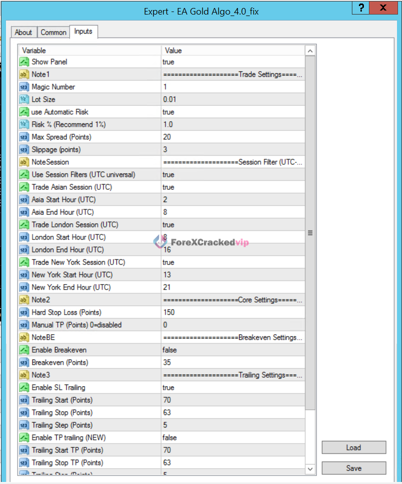 EA Gold Algo MT4 Settings Panel Explained