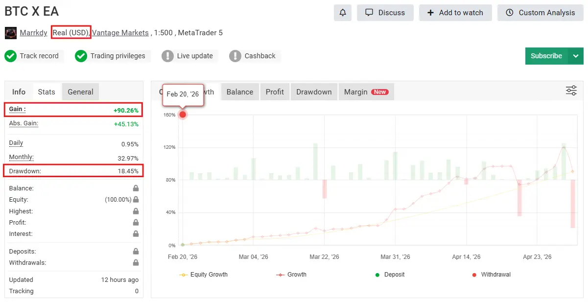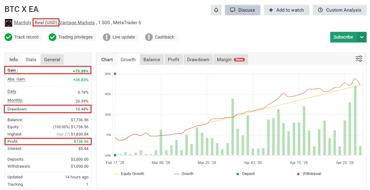 2. BTC X EA MT5 MYFXBook Verified Review | Check Live Result