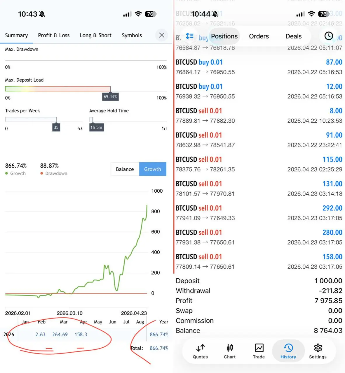 • 24/7 Market Coverage: While you sleep, the EA monitors the global Bitcoin market for opportunities.