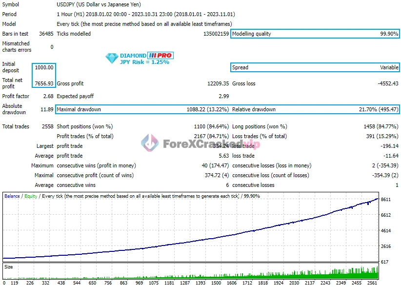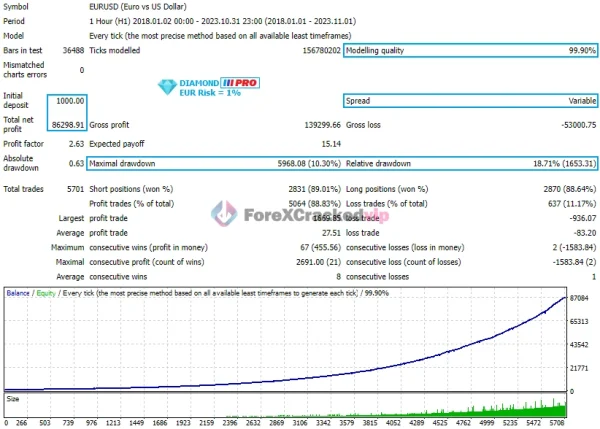Diamond Pro MT5 is designed for traders who value precision, safety, and adaptability. The EA operates primarily on the H1 timeframe and supports major currency pairs such as EURUSD, GBPUSD, and USDJPY.
