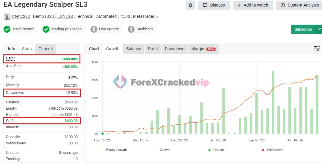 EA Legendary Scalper MT4 V151 – MYFXBook Verified +611% Gain | AI-Enhanced Breakout & Scalping Expert Advisor