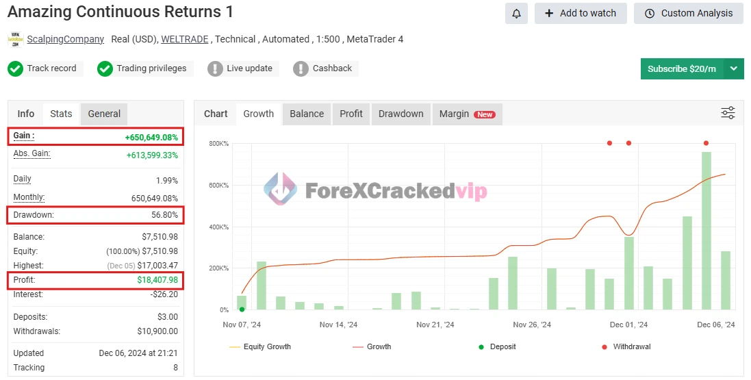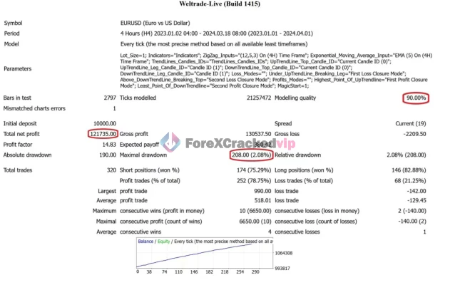 Based on backtest data, the maximum drawdown is only 2.08%, which is considered very low for Forex automation.