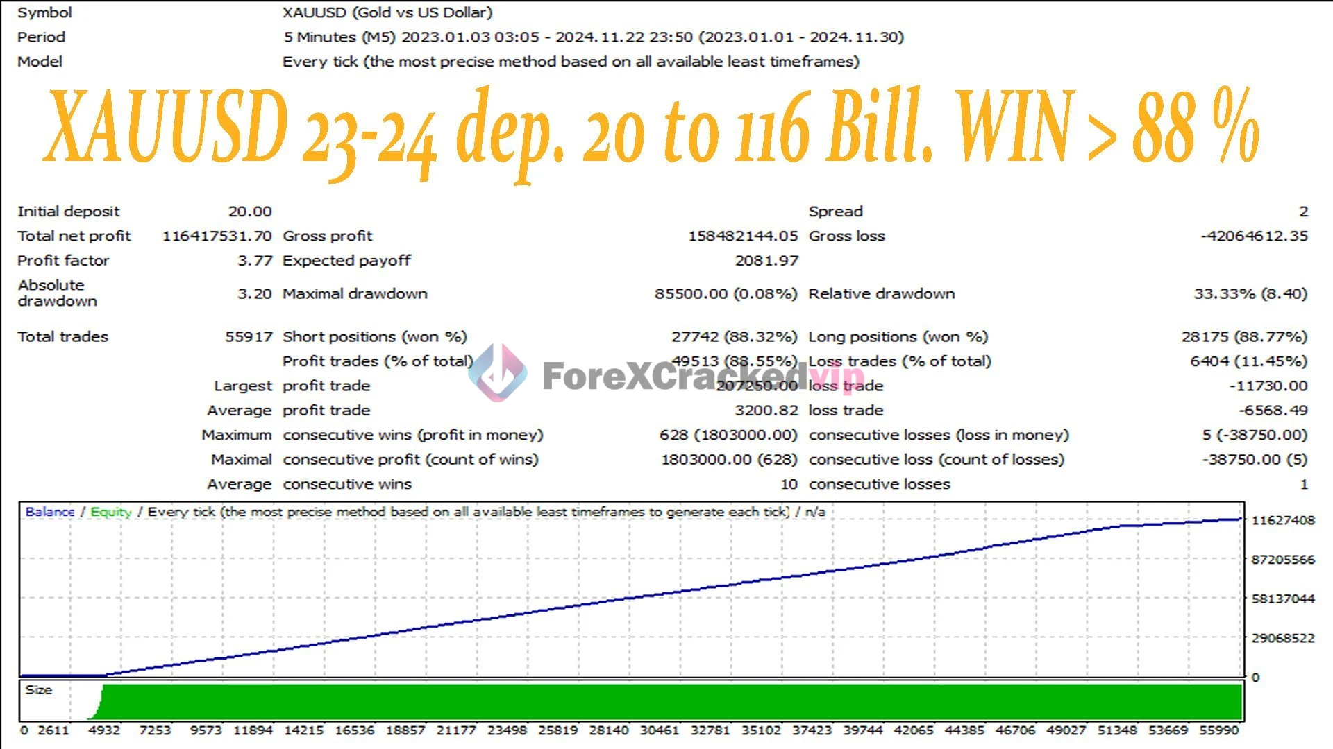 Win Rate: 88.55% (49,513 winning trades out of 55,917)