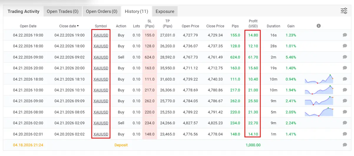 | Pairs | XAUUSD (Gold) |