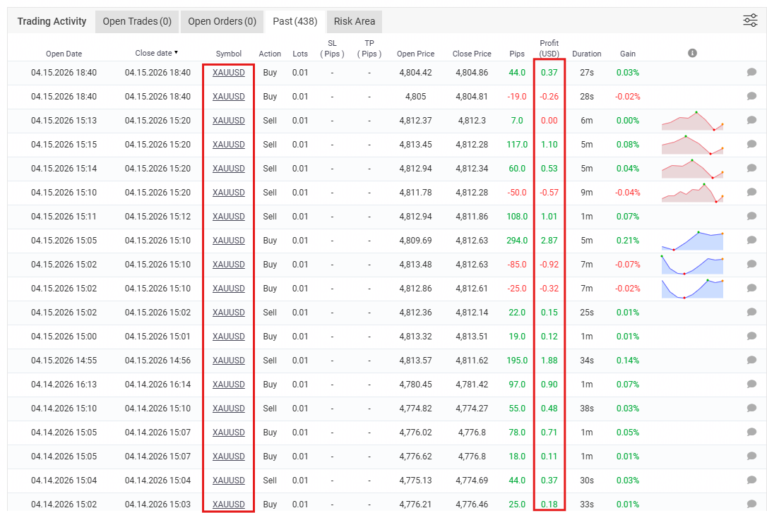 • Duration Control: Trades are rarely held longer than 25 minutes to avoid overnight swap risks.