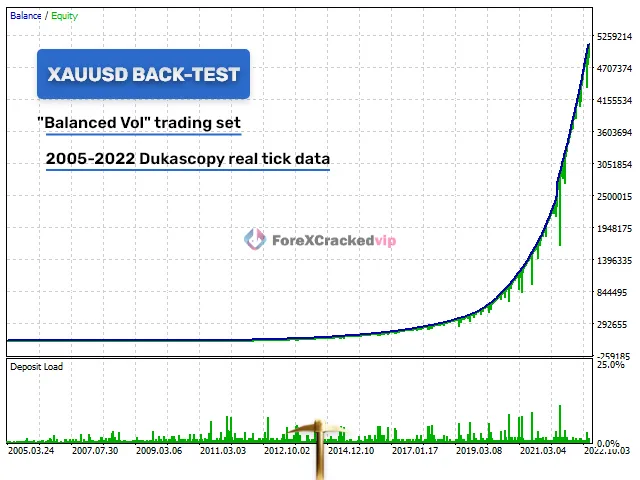 - Backtest images display long historical runs on XAUUSD with real tick data references and high history quality shown in the screenshots.