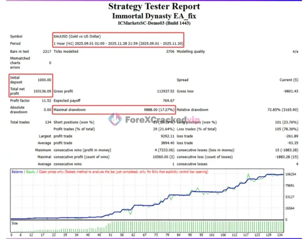 Immortal Dynasty EA is a professional automated trading system developed for traders who value stability, adaptability, and disciplined risk management. The EA is optimized for gold trading (XAUUSD) on the H1 timeframe, making it suitable for medium-term trend traders.
