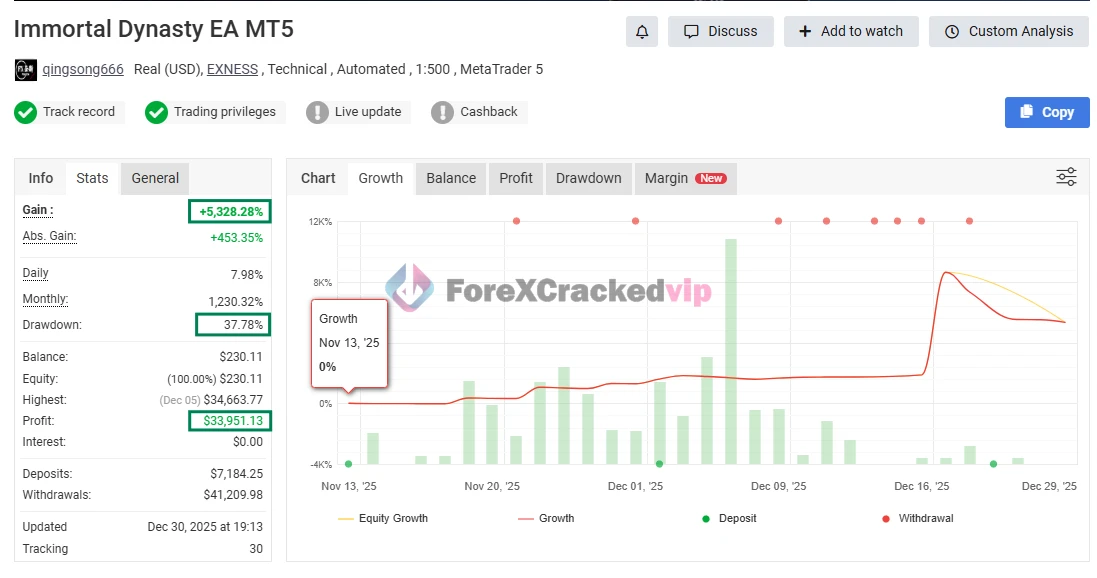 The Immortal Dynasty EA MT4 MYFXBook Verfied Review Account 1 | Check Live