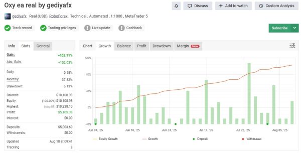 Traders often search directly for Oxy EA MT4, OXY AI EA, or Oxy Expert Advisor to check live performance before making a purchase.
