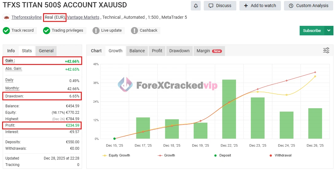 3. TFXS Titan Ultimate EA MYFXBook Verified Review – Real Account | Check Live