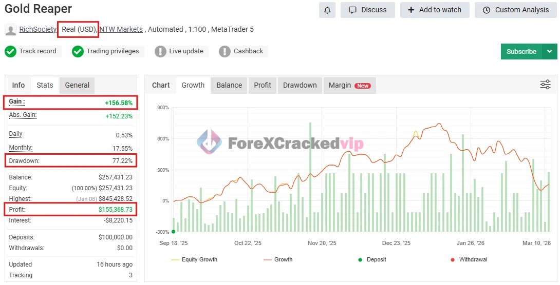 The Gold Reaper MT4 EA MYFXBook Review (Gold Reaper 156 Gain)-forex-cracked-vip