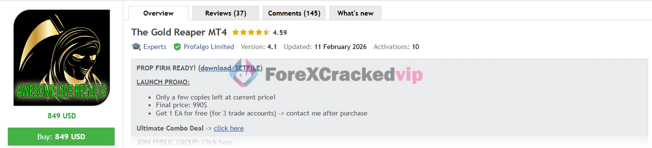 From the material provided, The Gold Reaper MT4 stands out as a gold EA aimed at traders who want a balance between profit potential and controlled drawdown. The official product information says it uses breakout logic around important support and resistance levels, multiple internal strategies, and adaptive lot sizing tied to maximum allowed drawdown. Recent buyer feedback on the product page is also generally positive, with reviews describing it as solid, long-term minded, and backed by responsive support.