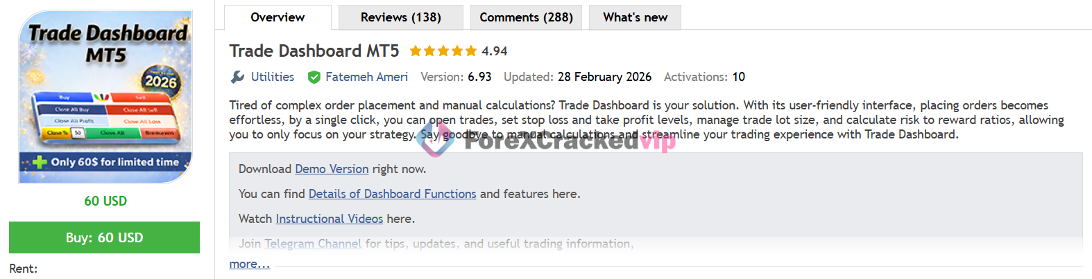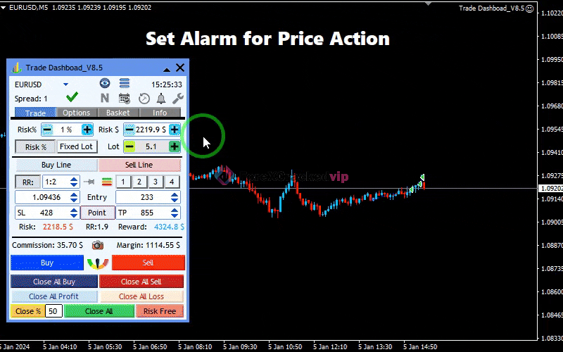 Trade Dashboard MT5 is a powerful trade management tool for MetaTrader 5 with automatic lot size calculation, risk management, trailing stop, breakeven, and partial close, helping traders manage positions efficiently and reduce errors.