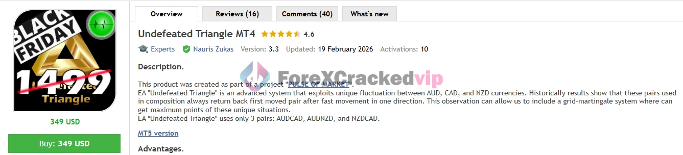 Undefeated Triangle MT4 is a very interesting option for traders who want a more specialized MT4 robot instead of another generic forex EA. Its three-pair structure gives it a clear identity, and the combination of automation, recovery logic, and added trade controls makes it attractive for traders who understand how basket-style systems behave.
